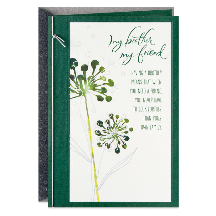 Your brother has made a difference in your life and this heartfelt birthday card helps you express your sincere gratitude for his friendship and the memories you share. Greeting features foil accents, raised design and a silver elastic cord.- Birthday greeting card features embossing, foil and elastic cord.