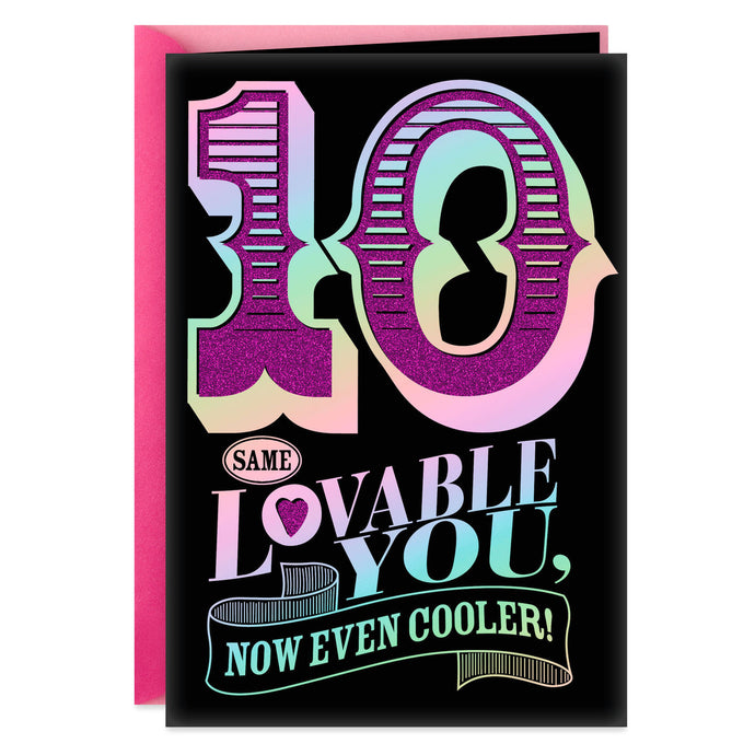 Fun fonts, doodles, and a palette of purple send a sweet message of celebration to a girl celebrating a milestone birthday: 10! Shiny glitter and foil accents dress up the raised design for a fun finish.- Birthday greeting card features raised design, foil and glitter.